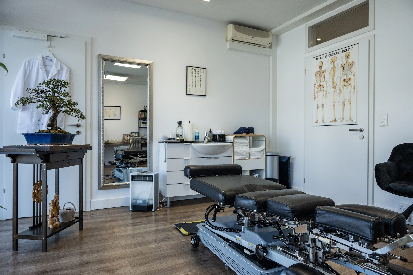 Dr. René Gassner kombiniert die traditionelle Thompson-Technik mit weiteren Modalitäten, wie Cox Flexion/Distraction oder Neuromuskulärer Therapie. Die Behandlung umfasst sowohl Extremitäten als auch Beckenfehlstellungen und ist in der Regel völlig schmerzfrei. Ziel ist eine sanfte und angenehme Therapie, auch für Patienten, die zuvor keinen Erfolg mit Chiropraktik hatten. Wir arbeiten mit zwei Lloyd Galaxy Ultimate Behandlungstischen, speziell für uns in den USA angefertigt. Die Tische ermöglichen eine sanfte und effiziente Behandlung. Eine Hydraulik richtet den Tisch auf, sodass Patienten sich nicht selbst hinlegen müssen – besonders bei akuten Schmerzen ist dies praktisch und schmerzfrei.